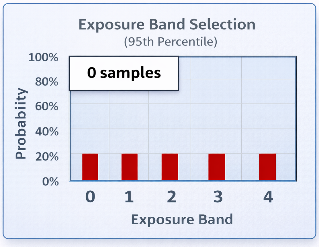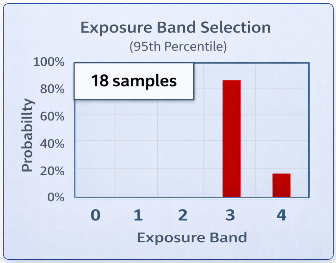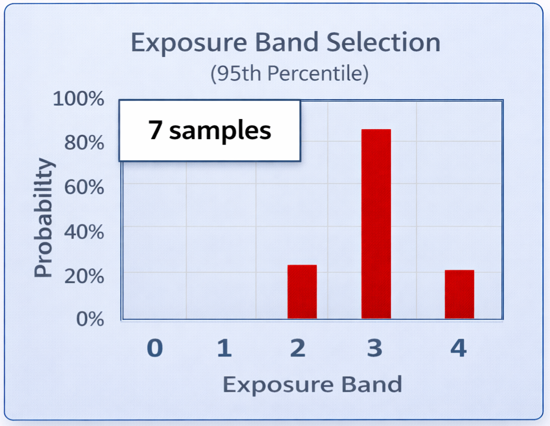 As you collect more samples representing the same SEG, the IHDA result will begin to approach higher certainty, i.e., a higher probability of being inside a single Exposure Band, and a lower probability of being in other Bands.