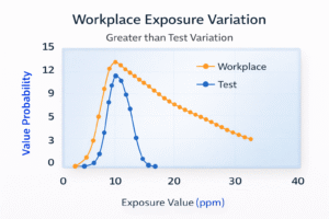 More recently, AIHA’s Exposure Assessment Committee discovered that IH practitioners tend to underestimate exposures when reviewing workplace exposures, because workplace exposures tend to have high variation that follows a skewed (lognormal) pattern rather than the normal (Gaussian) pattern (as illustrated in the graphic).